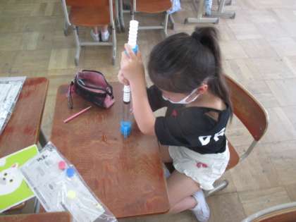 理科の時間に閉じ込められた水に力を加えると体積が変化するのかどうかについて調べました。