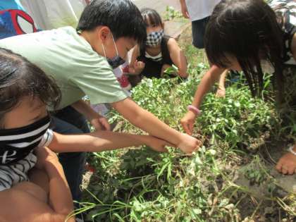 土の中にあることを見つけて,ごっそり引き抜いていました!