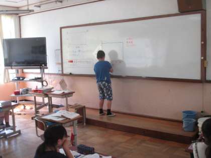 算数の時間に平行や垂直を使って,長方形をかく学習をしました。三角定規を上手に使ってかくことができました。