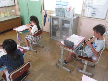 音楽の時間にリコーダーの練習をしました。夏休みに練習した「エーデルワイス」をみんなで演奏しました。