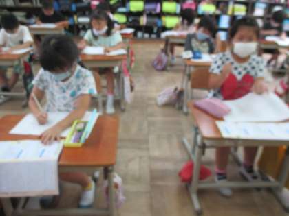 夏休みにメモしてきたことをもとに,原稿用紙に書きまとめていっています。
