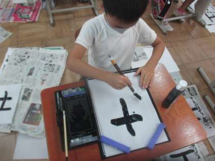 今日の書写の学習は「たて画の筆使い」に気をつけて,「土」という字を書きました!