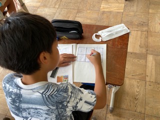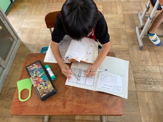 算数の時間に台形,平行四辺形について学習しました。ノートに作図し,図形の特徴から定義を理解できました。