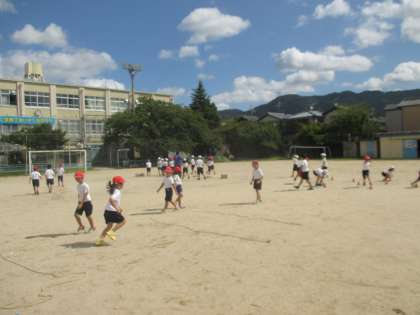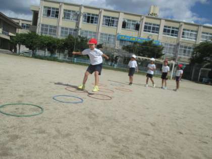 とび遊びが楽しくなってきたところで,どれだけ遠くまでとべるかや,とび遊びを使ったゲームをたくさんやってみました。