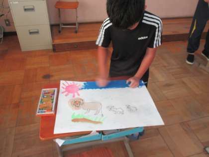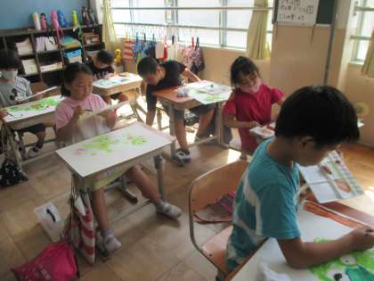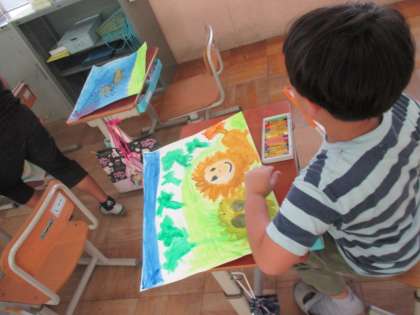 それぞれのクラスで,お話の心に残った場面を描き始めています。