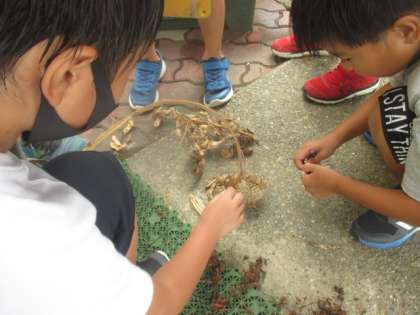 今日の理科の学習は,1学期に育てていたホウセンカ,オクラ,ダイズ,ひまわりを観察しました!