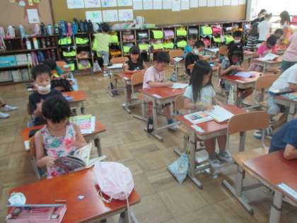 課題が早く終わったり,時間ができたりした時には,自分の席に座って,本読み・自由帳などをして過ごすことを,最近の重点目標としてがんばっています!初めはみんな,なかなかできなかったのですが,少しずつ「今,何をしたらいいのか」を考えられるようになりました。