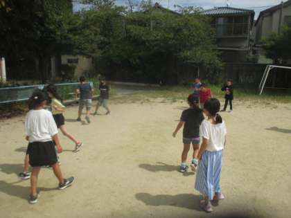 今日は,影を使った遊び「かげふみおに」をしてみました。