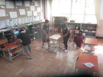 「まだ拭き掃除したい!」とすごく前向きに取り組んでいる子もいて,みんなのおかげで教室や廊下がピカピカになりました!