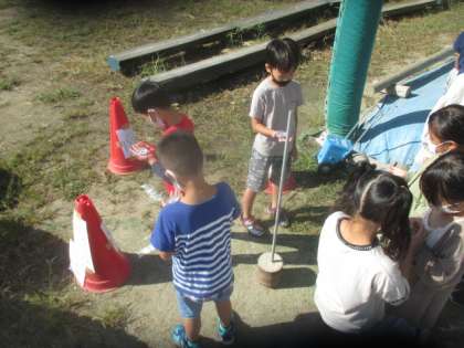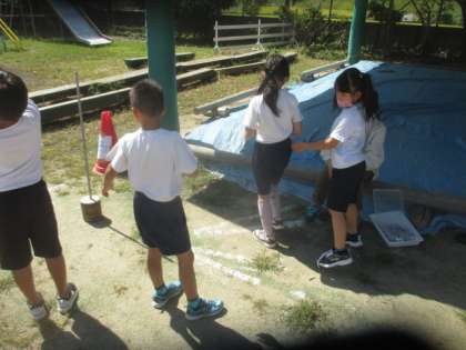 9時,12時,14時にできたかげの位置と,そのときの太陽の位置を比べました。