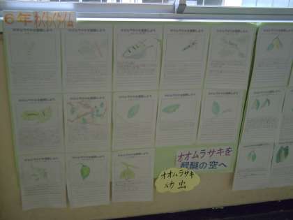 そのほかにも、成長過程や環境問題などにも関心をもち、オオムラサキの住みよい町にしたい!と、子どもたちはカードにたくさんの思いをかいてくれました。