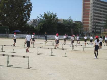 体育参観日ではハードル走も行います。