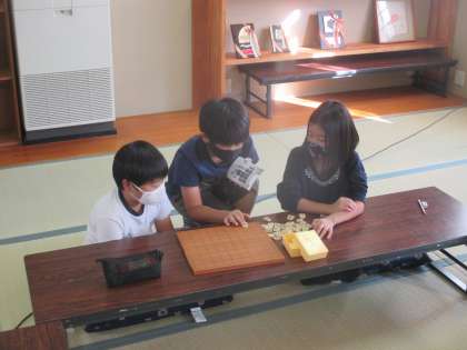将棋クラブでは,初めて将棋をする子もいたので,6年生に教えてもらいながら活動しました。