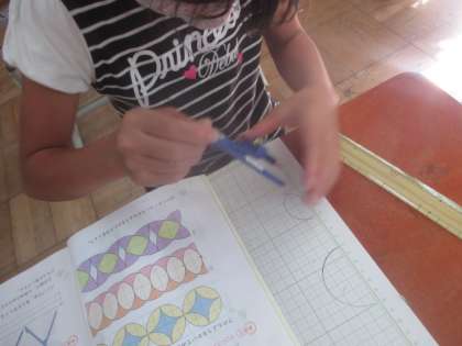 算数の学習は,「どこにコンパスのはりをさせばいいのか。」と,いうめあてで,難しい模様の描き方を考えました!
