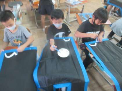 今日の6,7時間目の図工の時間に,絵の具で衣装にデザインを描いていきました!