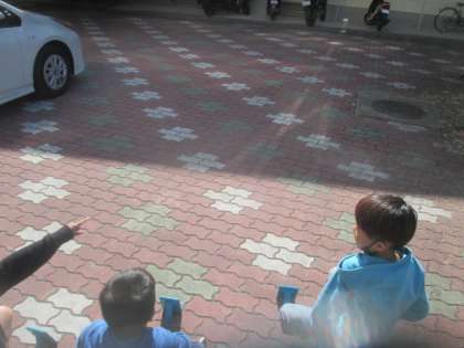 今日の理科の学習は,鏡の向きを変えたときの鏡で反射させた日光の進み方を調べました!