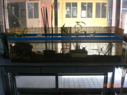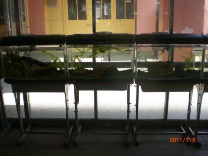山科川で捕まえたドンコ,ヨシノボリ,モロコ,オイカワやメダカなど元気に泳いでいます。