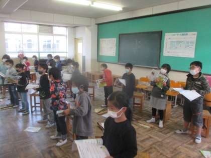 今日の音楽の学習は,校歌,「とどけよう このゆめを」,の他に新しく,「あの雲のように」という歌も学習しました!