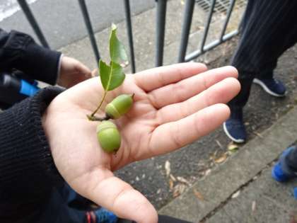 拾ったり,踏んで音を鳴らしたりとドングリと仲良く遊んできました。