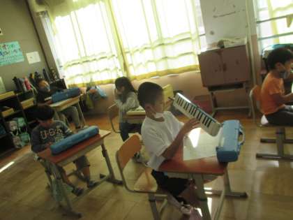 学習発表会で,「どんな発表を見せたいか」,子どもたちと話し合い,音楽グループとお話グループに分かれて練習をしています。