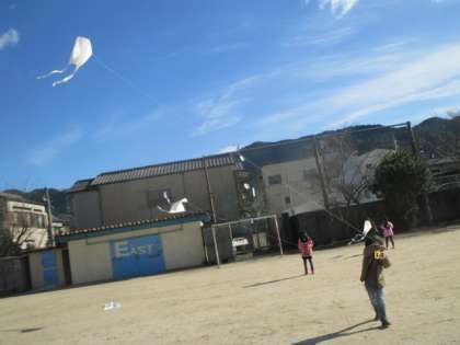 凧揚げが初めてという人も多く,みんな大喜びでした。