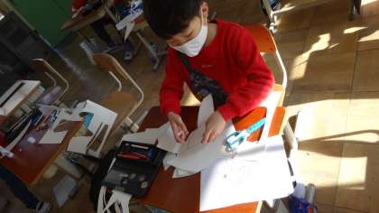 画用紙を切って貼る,切って貼る・・・の細かい作業をがんばっています!