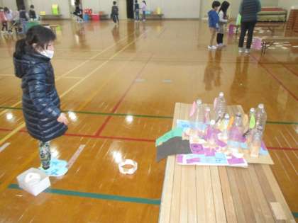 魚つりやボーリングが人気でした。輪投げでは、あきらめずに何回もチャレンジしていましたよ!