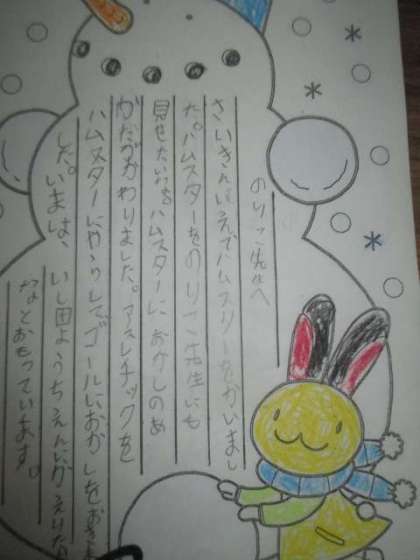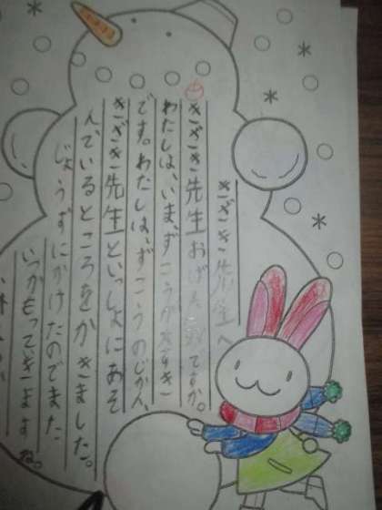 お手紙には、聞いてほしいことや伝えたいことを書きました。心も体もぐんと大きくなりましたね。雨で寒い一日でしたが,子どもたちのおかげで、心はぽっかぽかになりました。