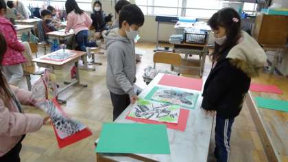 はじめての紙版画!とてもすばらしい作品ができてみんな喜んでいます!