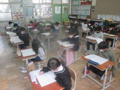 いつものテストとは少し違い,緊張している子もたくさんいましたが,時間ギリギリまでがんばって解いていました!