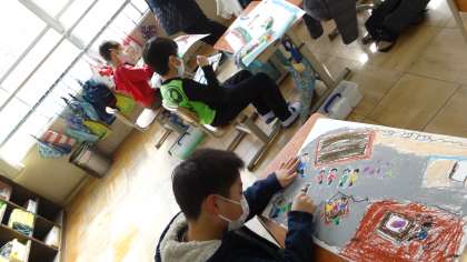 ここで,2年生で楽しかったことを振り返り,絵に描いています♪