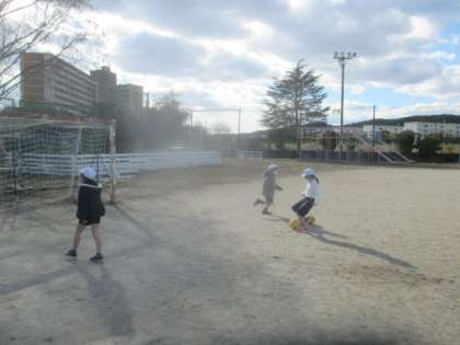 寒くてもボールを蹴ってたくさん走っていました!