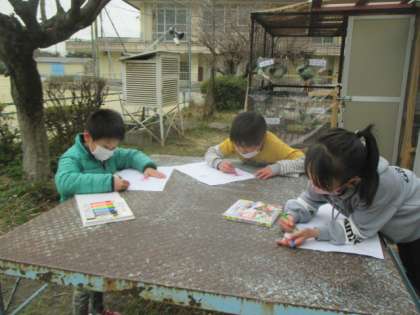 みんな、好きな色でこするのに必死です!!今日も、「先生見て〜〜!!」にたくさん出会えました(^^)