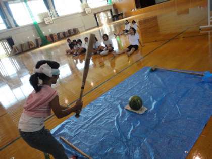たくさんの汗をかいて練習した後には、すいか割りをしました!