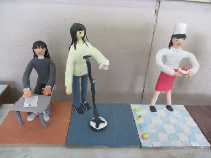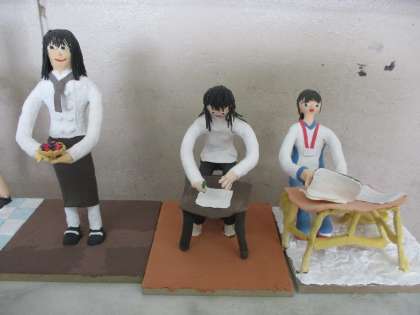 図工科の「12年後の私」では,将来の自分の姿を想像して粘土で表しました。