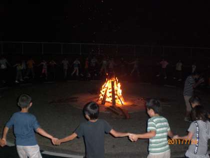 一日目最後の活動は,みんなが楽しみにしていたキャンプファイヤーです。
