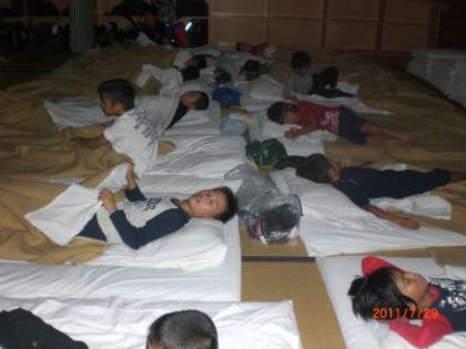 男子は大部屋で,みんなで布団をひいて眠ります。