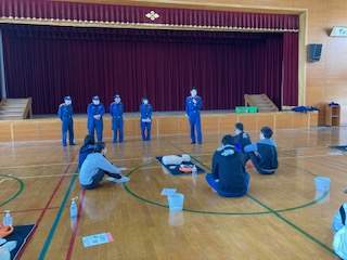 子どもたちの命を守るため,心肺蘇生の仕方や救助の方法など実施訓練しました。