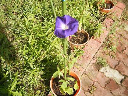 7月に種まきをしたアサガオが花を咲かせました。