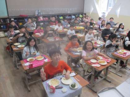 最初の多くの子どもたちがおかわりをして,もりもり食べていました!
