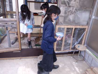 今日も当番のみんなで,うさぎ小屋のそうじをしました。