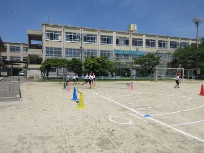体力テストのソフトボール投げに挑戦しました。少しでも距離がのびるように池田アルプス目指してがんばりました。