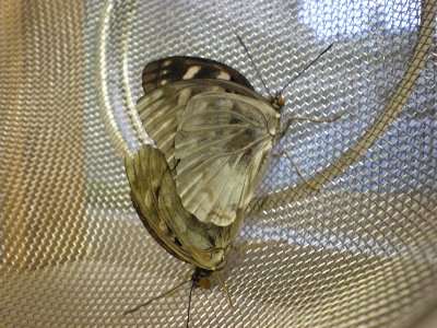 7月3日(金)6年生が放蝶にいった日の放課後残しておいたオオムラサキの雄と雌がハンドペアリングに成功しました。