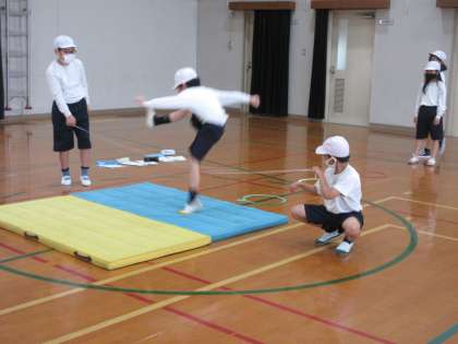 体育では,走り高とびの学習が始まっています。今日は,3歩のリズムに慣れるよう何度も練習を繰り返しました。お互いの良いところを見つけながら取り組む姿が見られました。