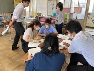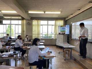 教職員が模擬授業を受けて授業について研修をしました。