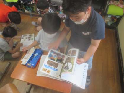 どの昆虫も,たまご,よう虫,さなぎ,せい虫の順番で育つのか図鑑を使って調べました!