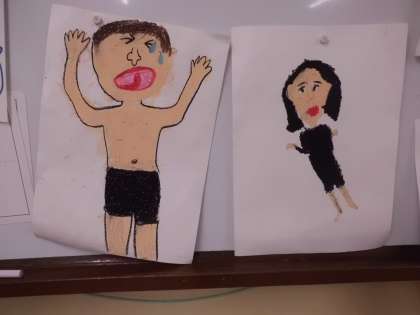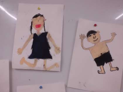 プールの前に,シャワーを浴びている自分を描きました。まだ途中ですが,完成が楽しみです。