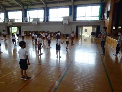 体育の時間に,運動会に向けて「よさこいエイサー琉球王」という民舞の練習をしています!
