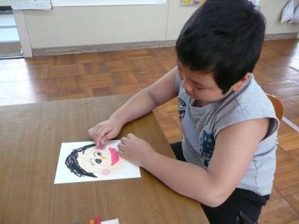 今日は、合同運動会の立看板に使用する“似顔絵”をかきました。
