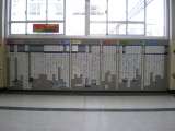 本校では階段や防火扉,窓などの空間を使い,いろいろ掲示しています。